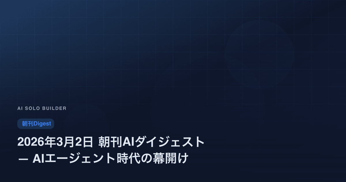 2026年3月2日 朝刊AIダイジェスト — AIエージェント時代の幕開け