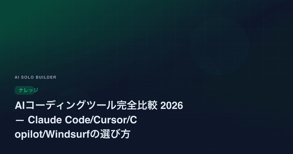 2026年最新のAIコーディングツール14製品を徹底比較。Cursor・Claude Code・Clineなど人気ツールの特徴、料金、使い分け戦略を日本の個人開発者向けに解説。