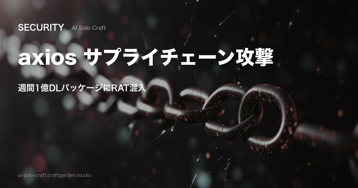 npmの公式axiosパッケージがアカウント乗っ取りにより改ざんされ、クロスプラットフォーム対応のRATが注入された。影響範囲の確認と対策を解説。