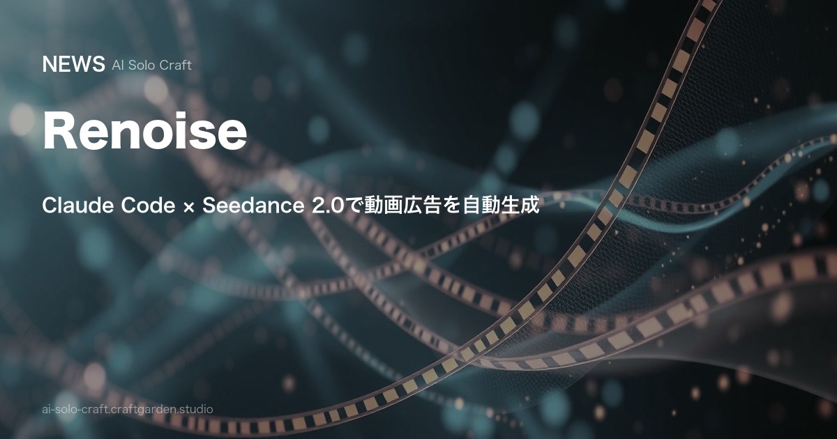 商品写真1枚から数百本の動画クリエイティブを自動生成。Claude Codeの推論力とSeedance 2.0の映像生成を組み合わせた「Renoise」が、動画広告制作のパラダイムを変えようとしている。