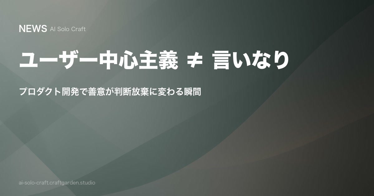 ユーザー中心主義≠言いなり — Shin氏の1万字論考から読み解く、プロダクト開発で善意が判断放棄に変わる瞬間